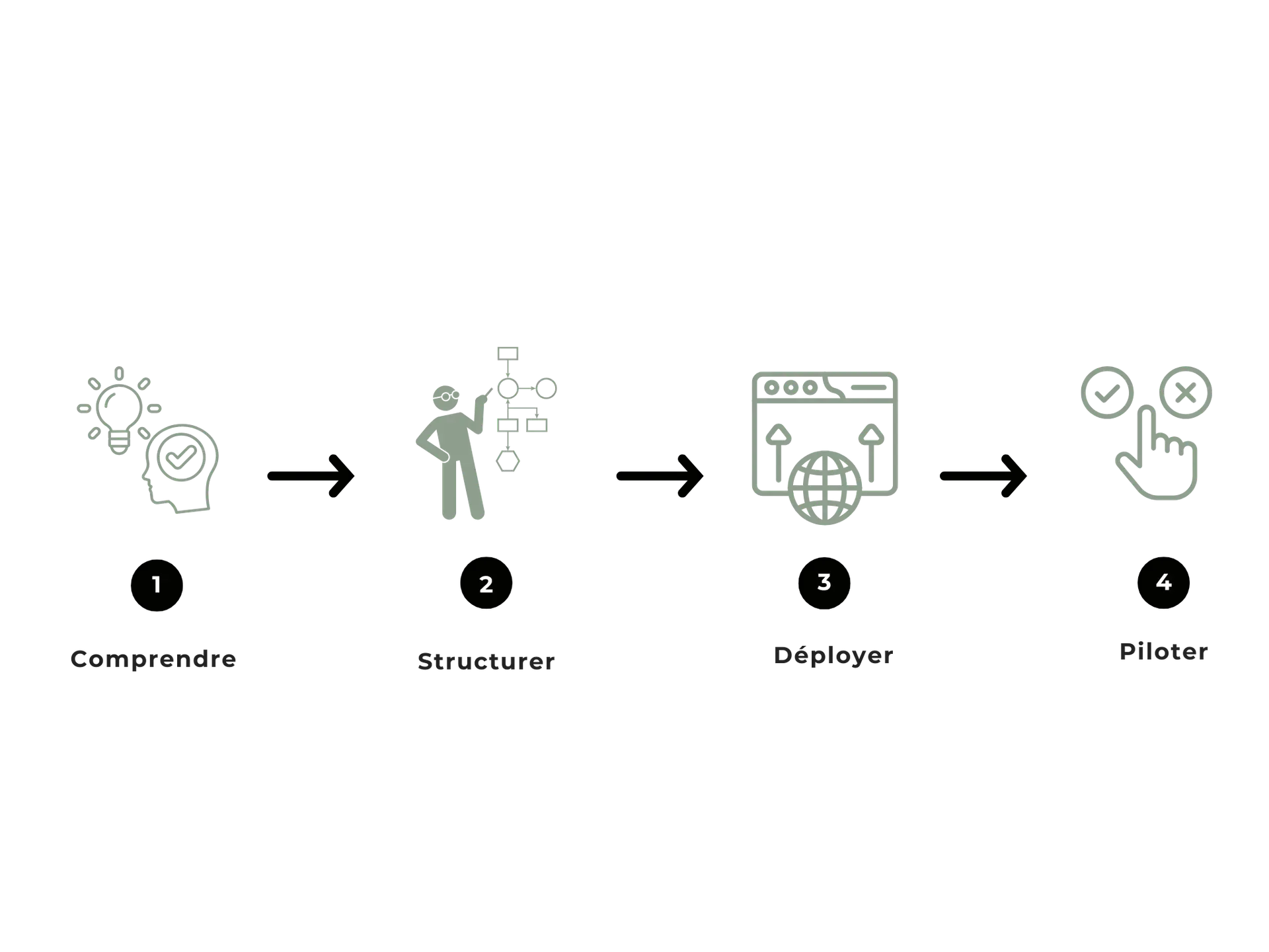 Audit, plan d’action, déploiement et pilotage : chaque étape transforme vos ambitions en résultats concrets.