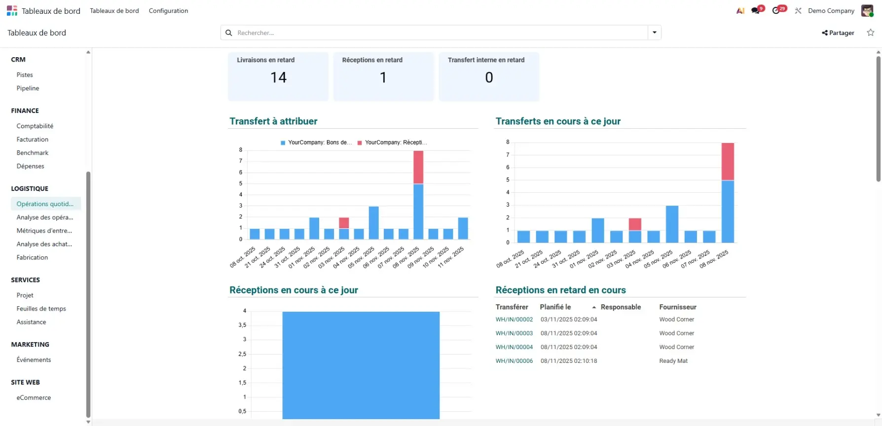 Grâce à ses tableaux de bord intuitifs, Odoo vous permet de suivre vos performances logistiques en temps réel.